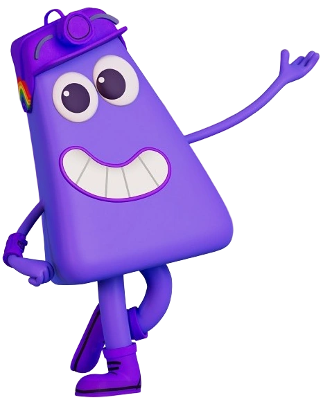 Violet is a violet frustum, slightly less pointy than Purple. She wears a violet helmet with a rainbow on its side showing the colours indigo and violet. She also wears a violet watch and violet boots.