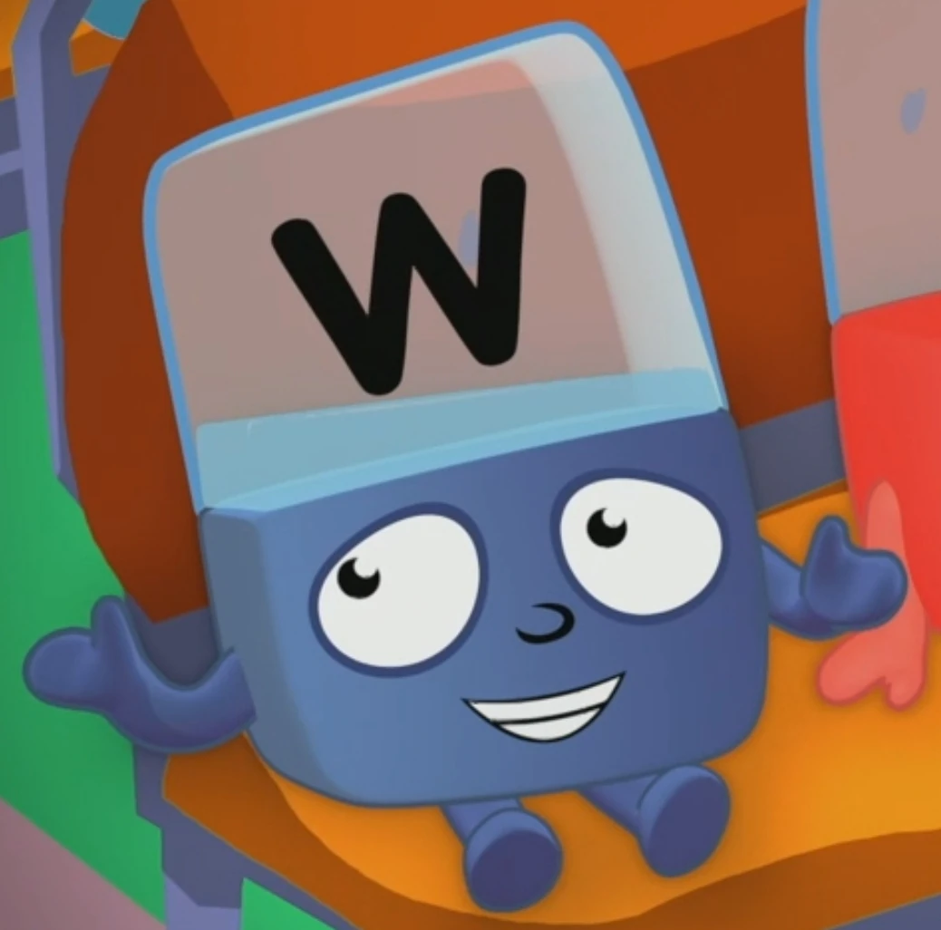 W is a character in Alphablocks. He is voiced by Lizzie Waterworth.